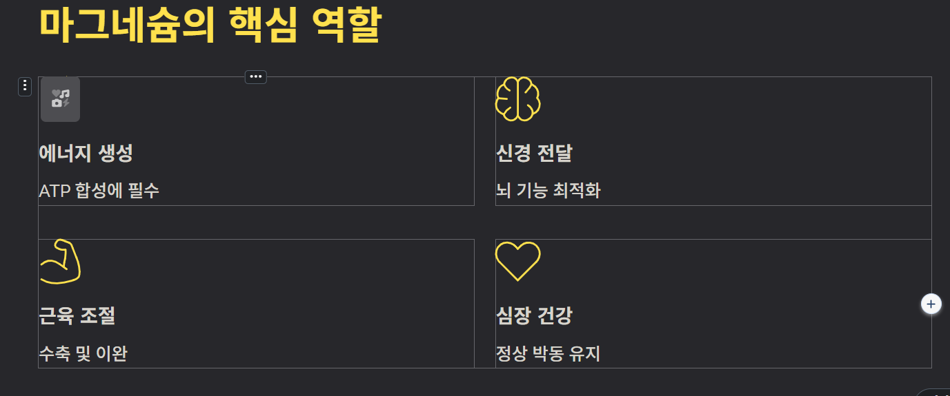 마그네슘은 우리 몸의 엔진을 돌리는 윤활유와 같습니다. 오늘 내용을 짧게 요약하자면 다음과 같습니다.